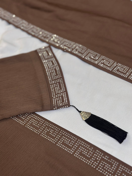 أُوكَازيُونMocha Studded Tassel Abaya
