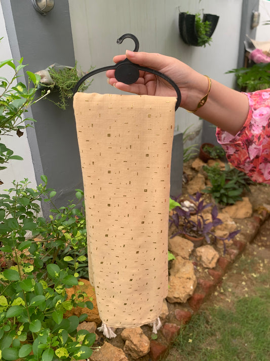 حجاب ذهبي منقوش بدون شرائط - بيج