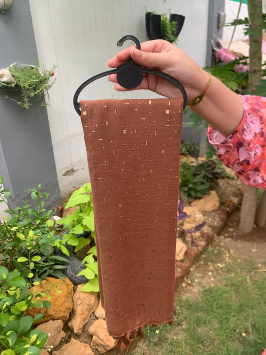 حجاب تركي منقوش باللون الذهبي - بني شوكولاتي